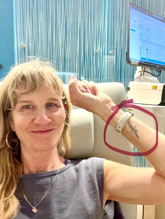 The fabulous Chordoma Foundation helped me find a clinical trial out of Los Angeles. This is a Phase Two trial of already-approved FDA drugs, which means no one receives a placebo, the medications are proven to be safe and effective, and everyone gets treated. It involves an IV infusion of targeted chemotherapy and immunotherapy every three weeks, indefinitely, as long as my system tolerates the drugs, and as long as the tumors respond. After qualifying in April, I now travel every three weeks to Providence Hospital in Santa Monica, CA to receive state-of-the-art care from an incredible team of researchers and clinicians.